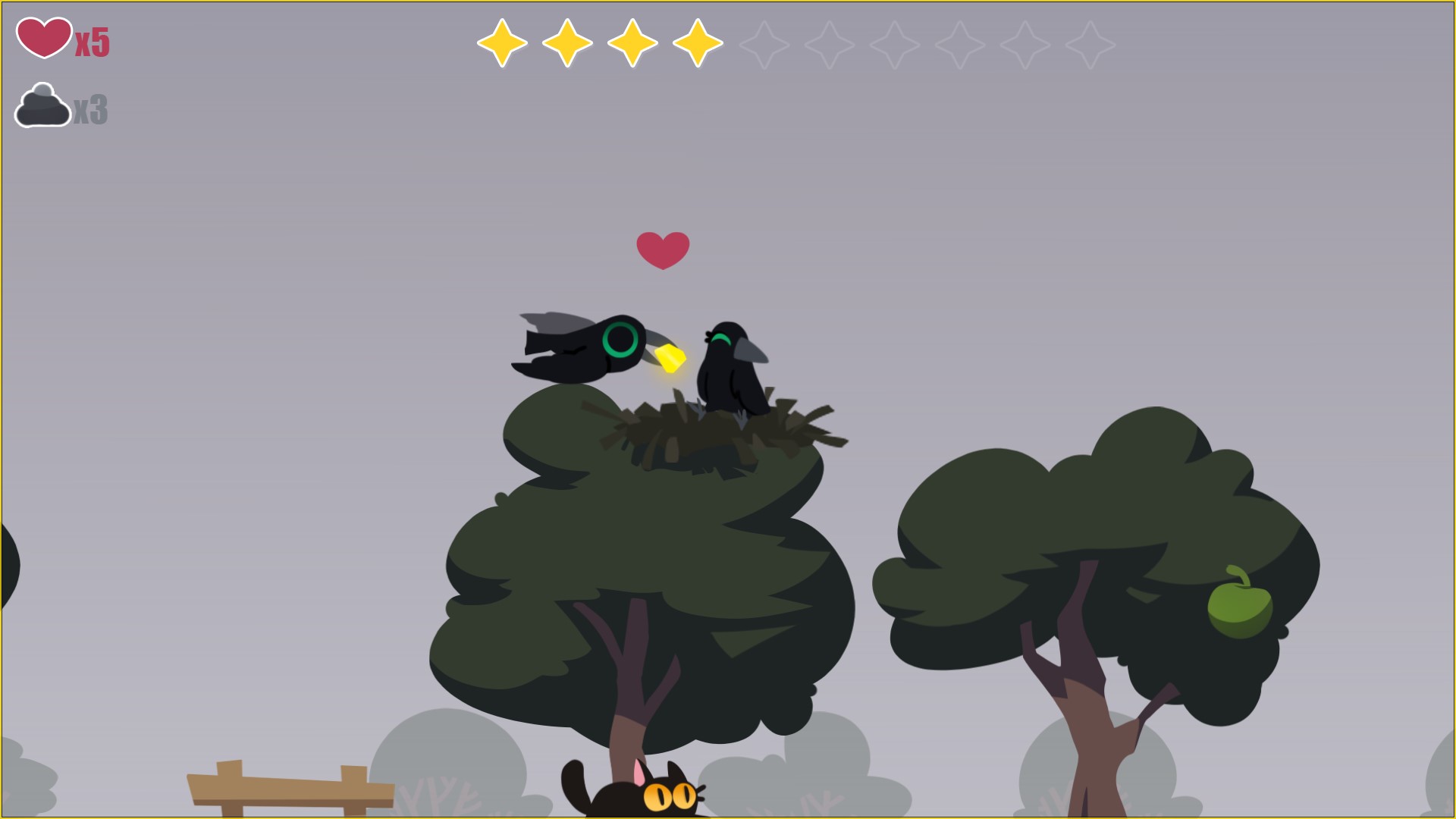 You play as a crow who should find the shiny things and bring them to your fiancee. Be careful, there are many dangers here: fire, people and, of course, cats.